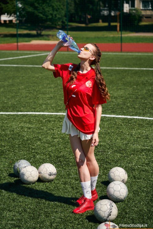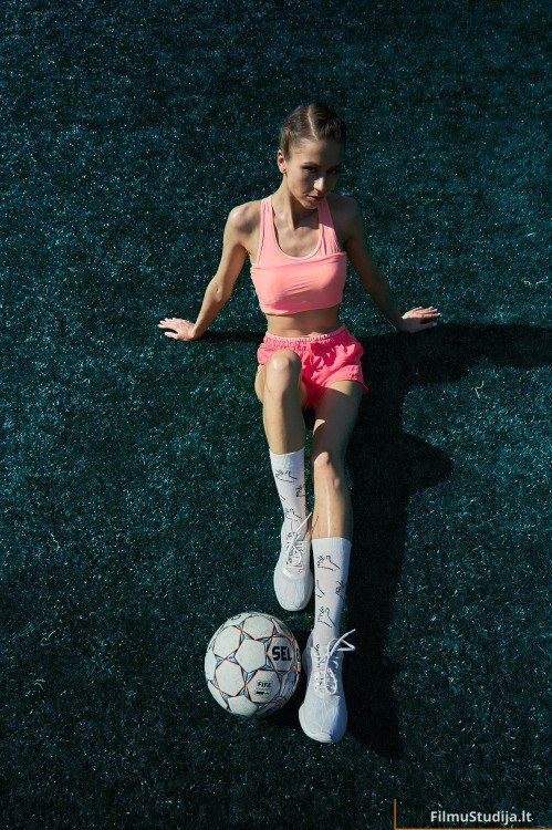 Išskirtinė fotosesija su mergina, kuri pasirodo ant futbolo aikštelės su kamuoliu. Ši fotosesija pabrėžia merginos jėgą ir ryžtumą.
